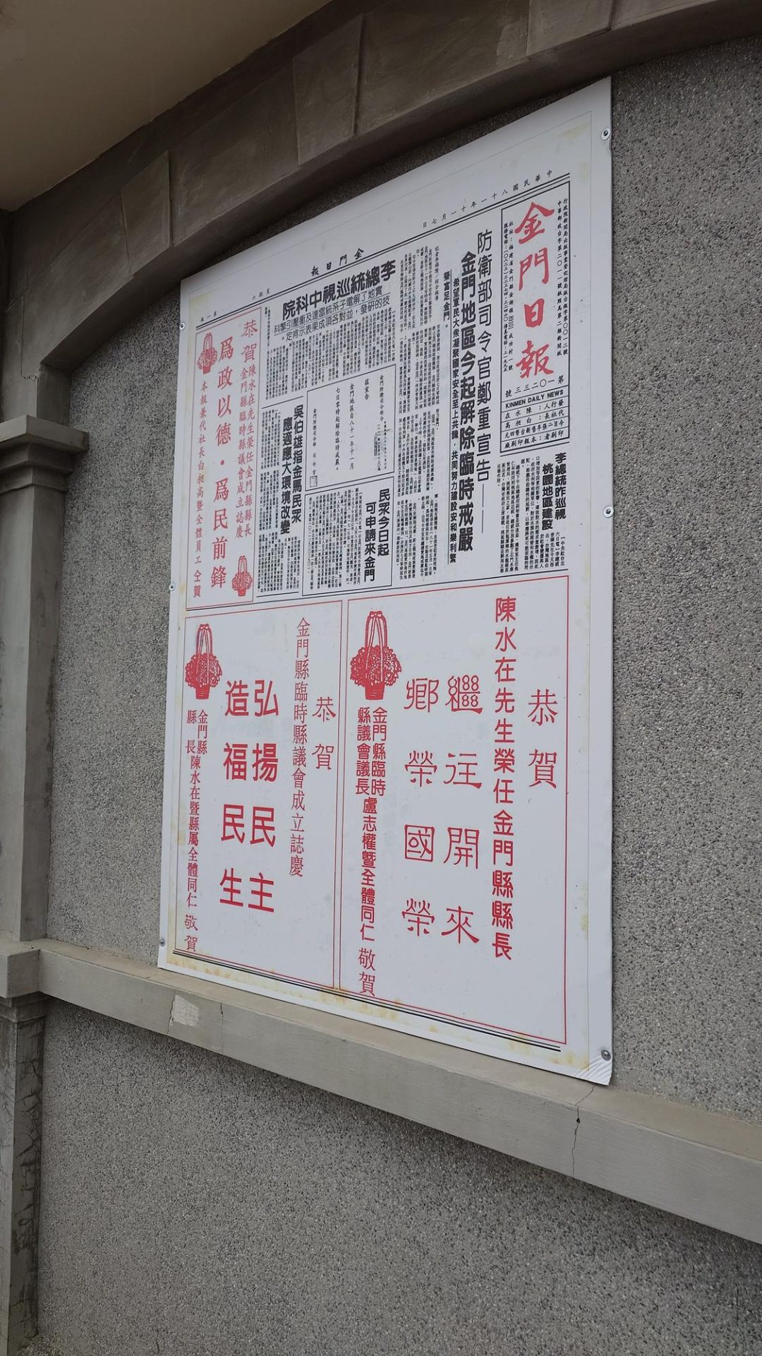 門口張貼當時金門日報 金門解除戒嚴當天的報紙