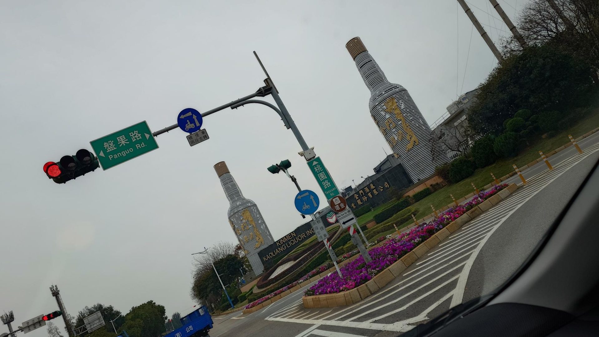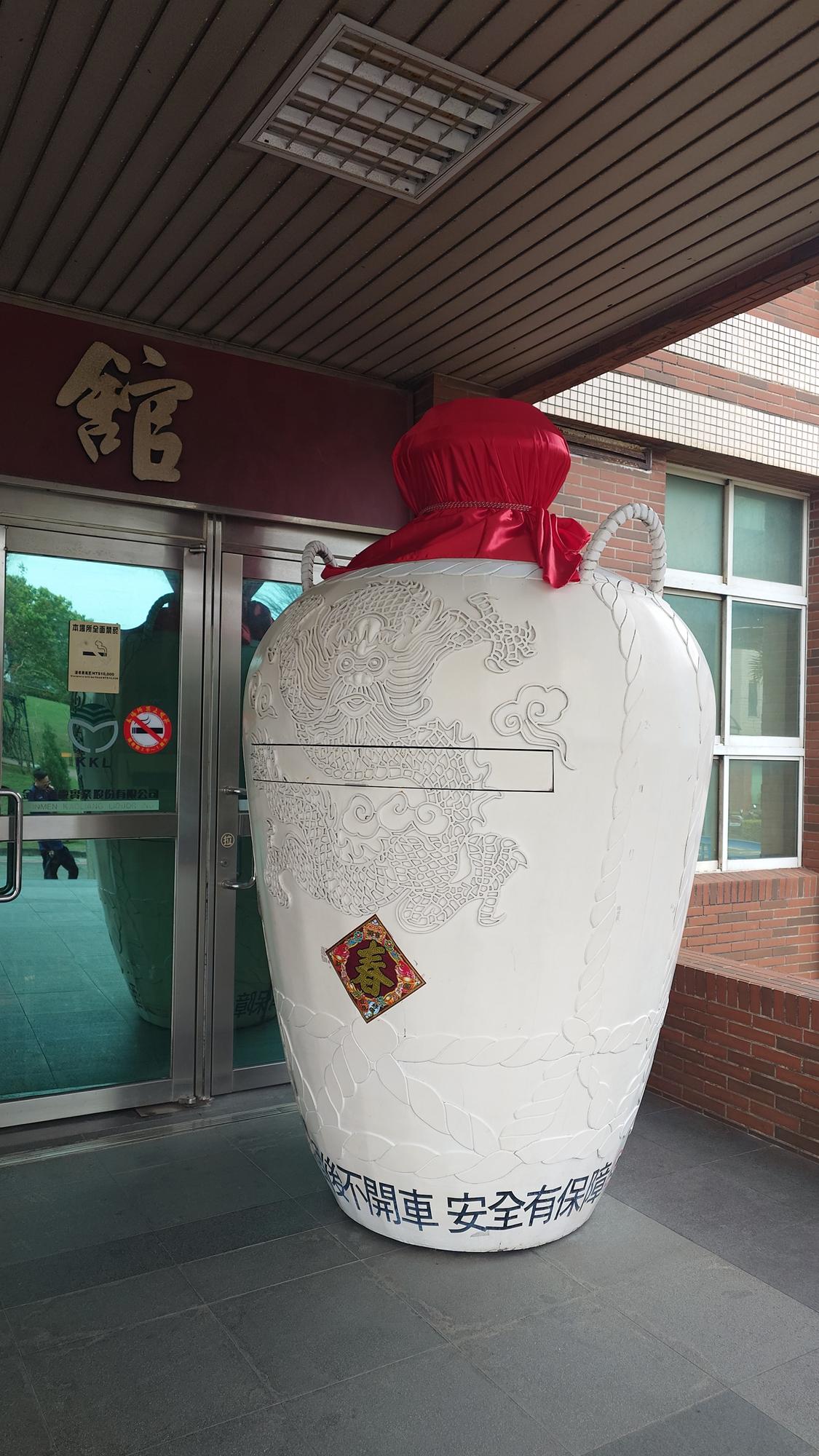 要進入金門酒廠前 就可以看到 高大的金門高粱酒瓶裝飾品