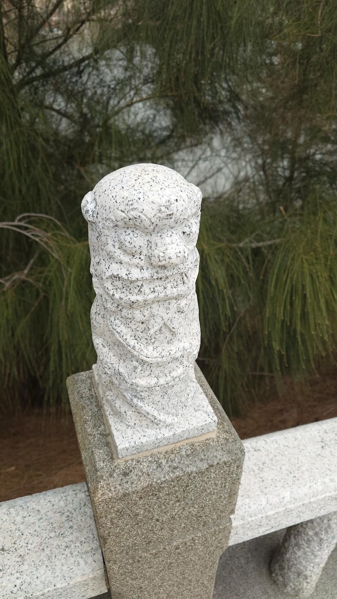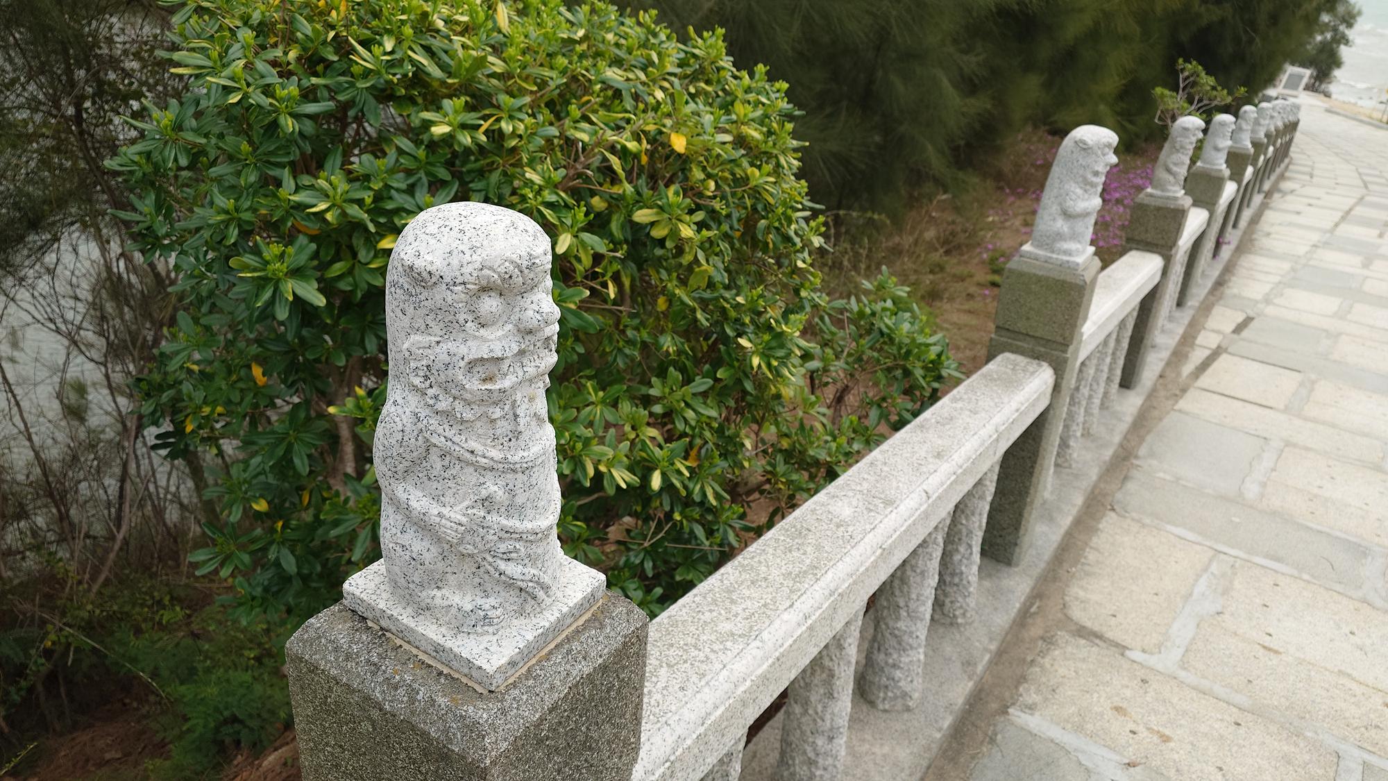 位於扶手欄杆柱頭 一整排風獅爺的石柱